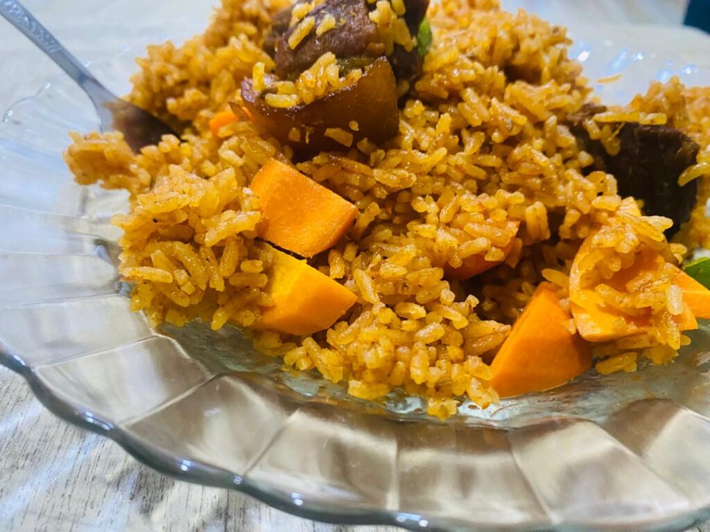 Enjoy smoky, spicy Jollof Rice rich in bold, authentic flavors.